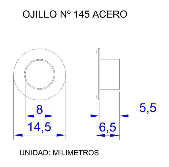 Diámetro Exterior: 14.5 mm. Diámetro Interior: 8 mm. Largo: 6.5 mm. |